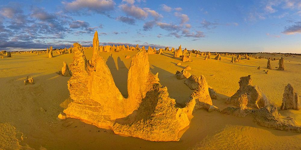 ピナクルズは砂漠に無数の石灰岩の奇形群が立ち並ぶ、西オーストラリア州を代表する観光スポットで、パースから北に約200km、車で約2時間の場所にあります。