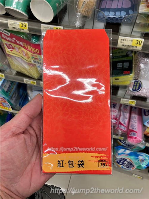 紅包袋は現地のセブンイレブンなどのコンビニで、何枚か入って15元(約75円)で買えます。
