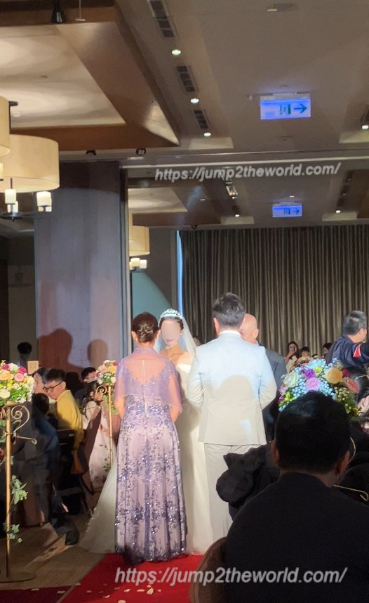 ちなみに、会社の上司や同僚などの卓は、日本のように忖度で上座にならないようで、新郎の仕事関係のゲストはもっとも遠い下座のようでした(後日、新郎談)
